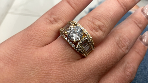 Anillo de compromiso para mujer en oro 10K con zirconia, diseño elegante y clásico. Talla 8.5 (Z8/5) y peso de 5.8 gramos. Ideal para uso diario o ocasiones especiales.